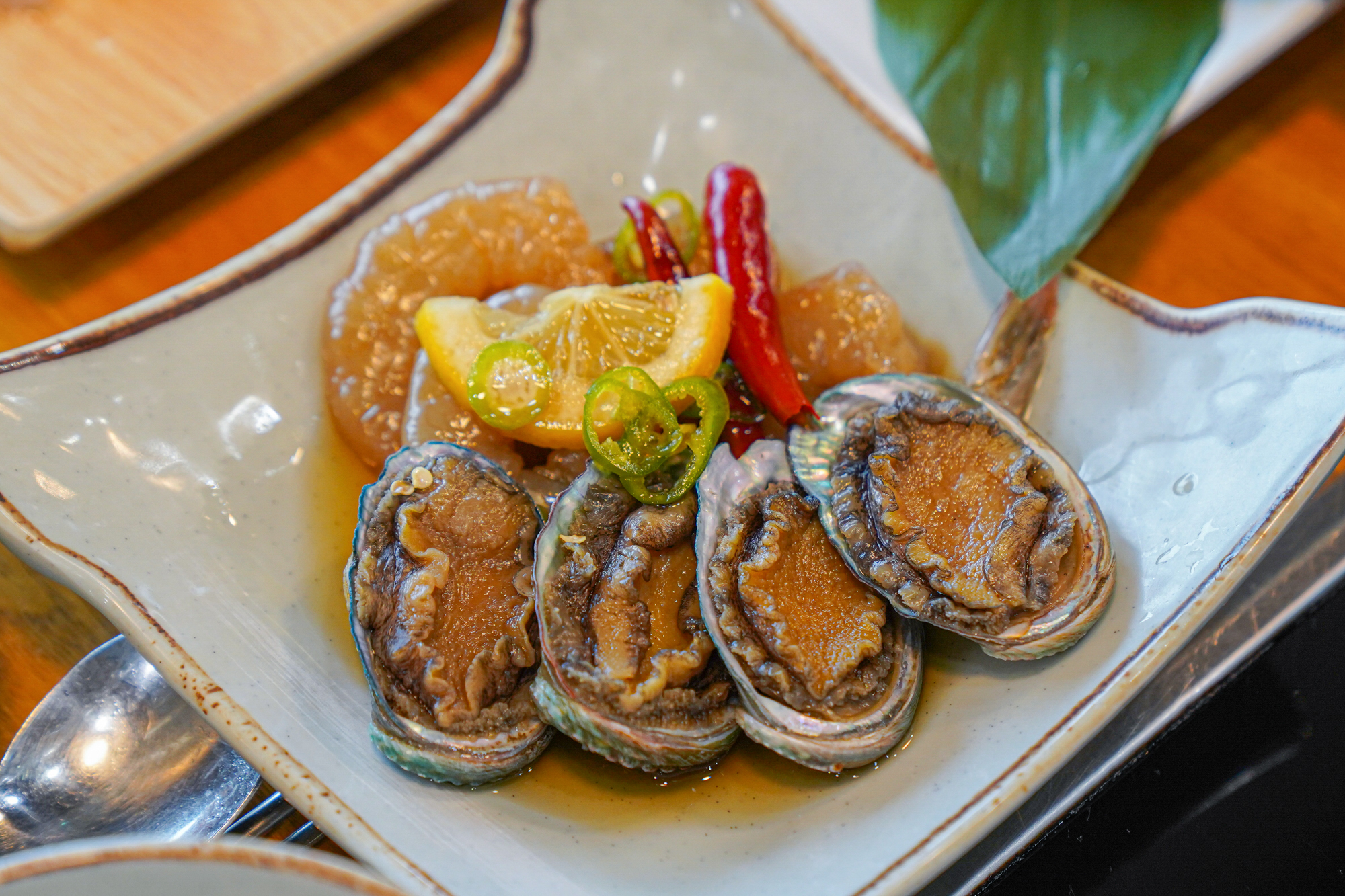 Abalone paste and shrimp paste are also served together with the Korean meal.